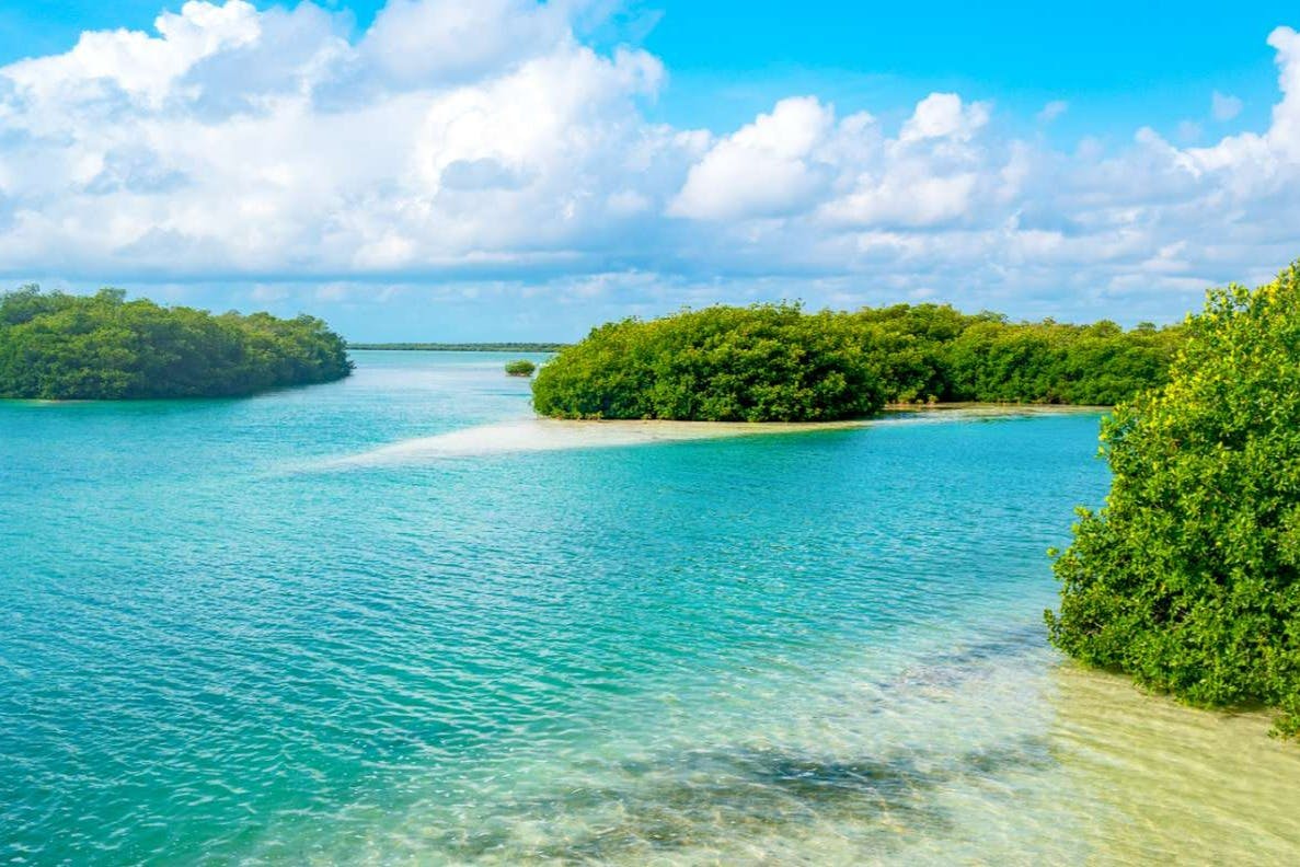 Vous commencerez votre visite guidée par le site archéologique de Muyil. Admirez les sites impressionnants d'El Castillo, La Plaza De La Entrada, et El Palacio Rosa. Suivez le chemin dans la jungle, explorez librement et trouvez un restaurant local pour recharger vos batteries. Votre prochaine étape sera Sian Kaan. Entourez-vous d'impressionnantes mangroves. Partez à la recherche de lamantins, de crocodiles, d'oiseaux et de raies manta dans leur habitat naturel. Emerveillez-vous devant les eaux magiques d'un cenote d'eau douce et cherchez les raies manta dans les eaux peu profondes. Alors que le soleil se couche sur la mer et la lagune, prenez un bain rafraîchissant dans un canal naturel d'eau douce et regardez le ciel changer de couleurs ! Une activité incontournable lors de vos vacances au Mexique.