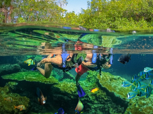 Dans la langue maya, Xel-Há signifie "où l'eau naît", et vous comprendrez vite le nom lorsque vous profiterez de nombreuses activités aquatiques. Sautez des falaises et profitez de la tyrolienne, en plus du snorkeling et de la baignade dans ce paradis qui mêle action et nature !