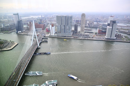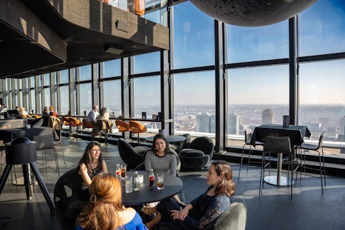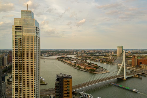 Visitez le Bar Celest à Rotterdam, situé dans le plus haut bâtiment de la ville. Profitez d'une vue à 360° sur la ville en sirotant un café et en mangeant des éclairs légers, des pavlovas croustillants et d'autres sucreries.