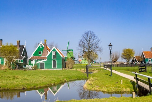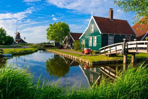 Visitez Zaanse Schans, un village situé près d'Amsterdam, et découvrez des moulins à vent historiques et des maisons traditionnelles en bois. Utilisez un chatbot d'IA sur WhatsApp comme guide. Marchez à votre rythme et explorez les moulins à vent, la boulangerie, l'épicerie et la fabrique de chaussures en bois. Dégustez du fromage hollandais et prenez des photos du paysage verdoyant et des structures. Inutile de télécharger des applications ou de faire appel à des guides humains. Utilisez votre smartphone pour naviguer et explorer tout ce que ce village a à offrir.