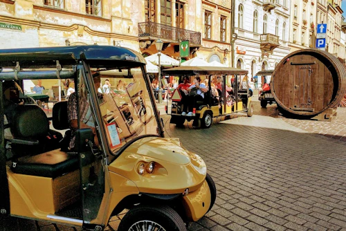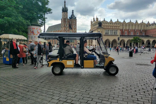 Découvrez la vieille ville de Cracovie dans le siège confortable d'une voiturette de golf pour vous régaler des ruelles médiévales, de la vibrante place du marché principal et du majestueux château de Wawel. Dans les bras verdoyants du Planty, la vieille ville regorge de joyaux monumentaux. Installez-vous confortablement, détendez-vous et laissez le commentaire audio vous faire découvrir la région. Depuis le centre-ville, en passant devant des églises et des palais imposants, vous découvrirez le quartier latin et admirerez l'église Saint-Étienne, Sainte-Anne, la Halle aux draps et la basilique Sainte-Marie. Ne manquez pas de jeter un coup d'œil à la fenêtre papale et au monastère gothique des Franciscains !