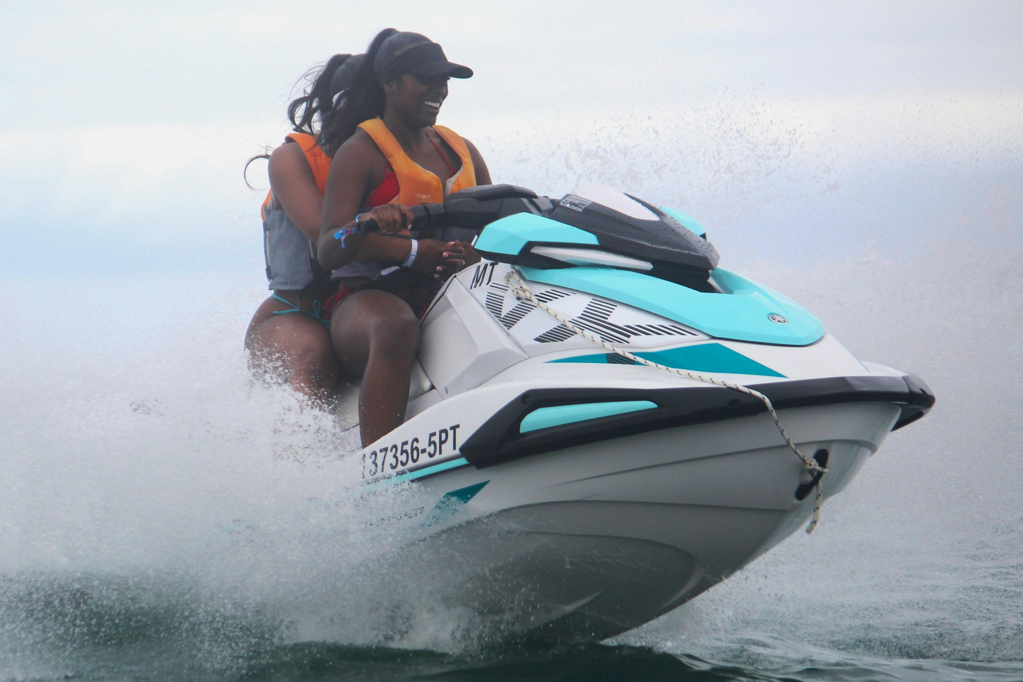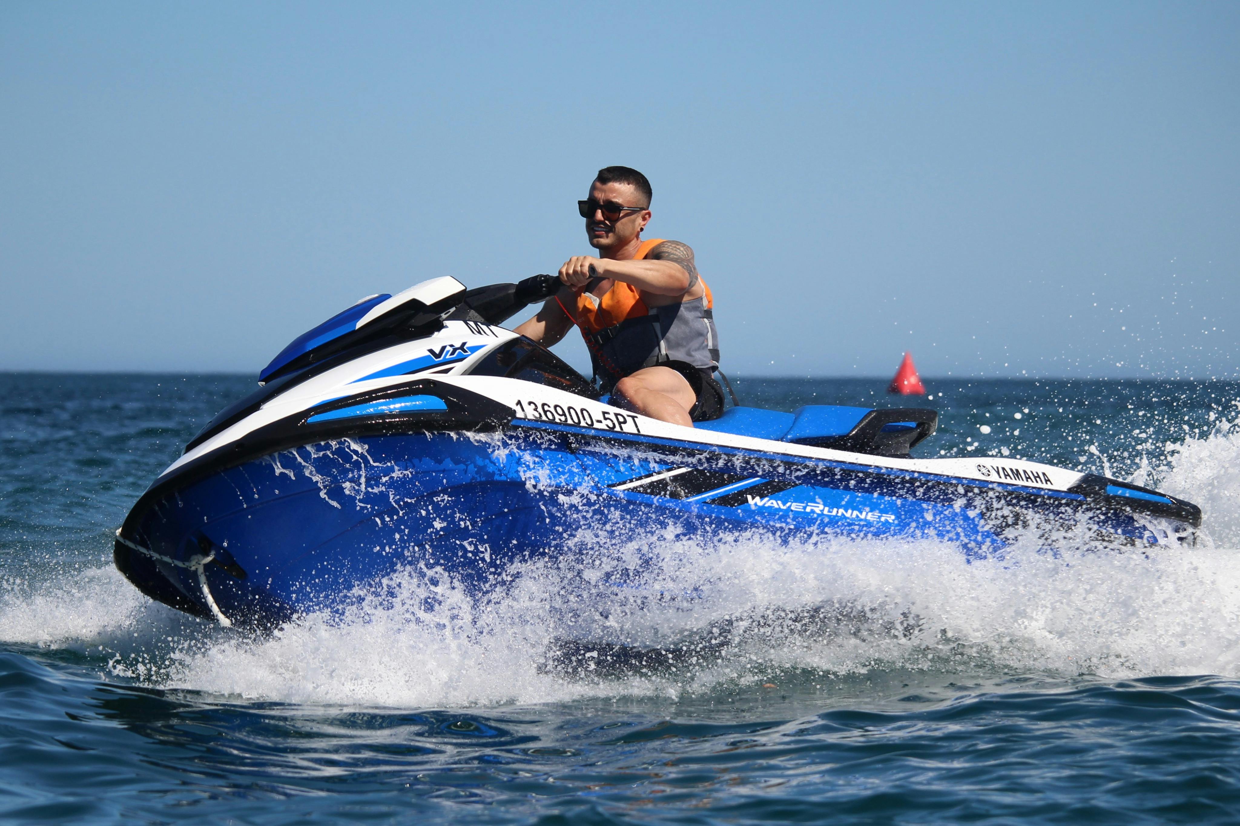 Prenez les commandes d'un jet-ski et partez du charmant village d'Armação de Pêra, l'un des derniers endroits de l'Algarve d'où l'on peut encore lancer des bateaux de pêche ! Profitez de la liberté de la mer et amusez-vous à écraser les vagues en mettant les gaz et en vous éloignant de la côte. Ne perdez pas vos chapeaux ! Vous recevrez un briefing de sécurité à votre arrivée, puis vous partirez seul ou accompagné. Chaque jet ski peut accueillir 1 ou 2 personnes. Accédez à des zones le long de la côte, y compris certaines grottes marines secrètes auxquelles vous ne pourriez pas accéder autrement.