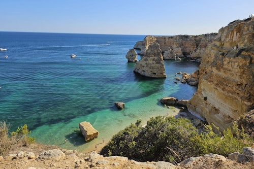 Partez à l'aventure de Faro à la grotte de Benagil et au-delà. Ce circuit est une exploration pleine de découvertes et de paysages pittoresques le long de la côte de l'Algarve. Commencez votre voyage à Faro, où un guide local compétent vous conduira dans une expédition côtière passionnante. Cette aventure vous fera découvrir toute une série de points forts. Commencez par explorer l'Algar Seco, les sentiers côtiers pittoresques et l'intrigante grotte de Boneca. Admirez la vue magnifique de l'impressionnante grotte de Benagil, puis admirez les belles falaises et les eaux claires de la plage de Marinha. En outre, des excursions sont organisées vers des grottes secrètes, accessibles uniquement à ceux qui recherchent une aventure plus audacieuse.