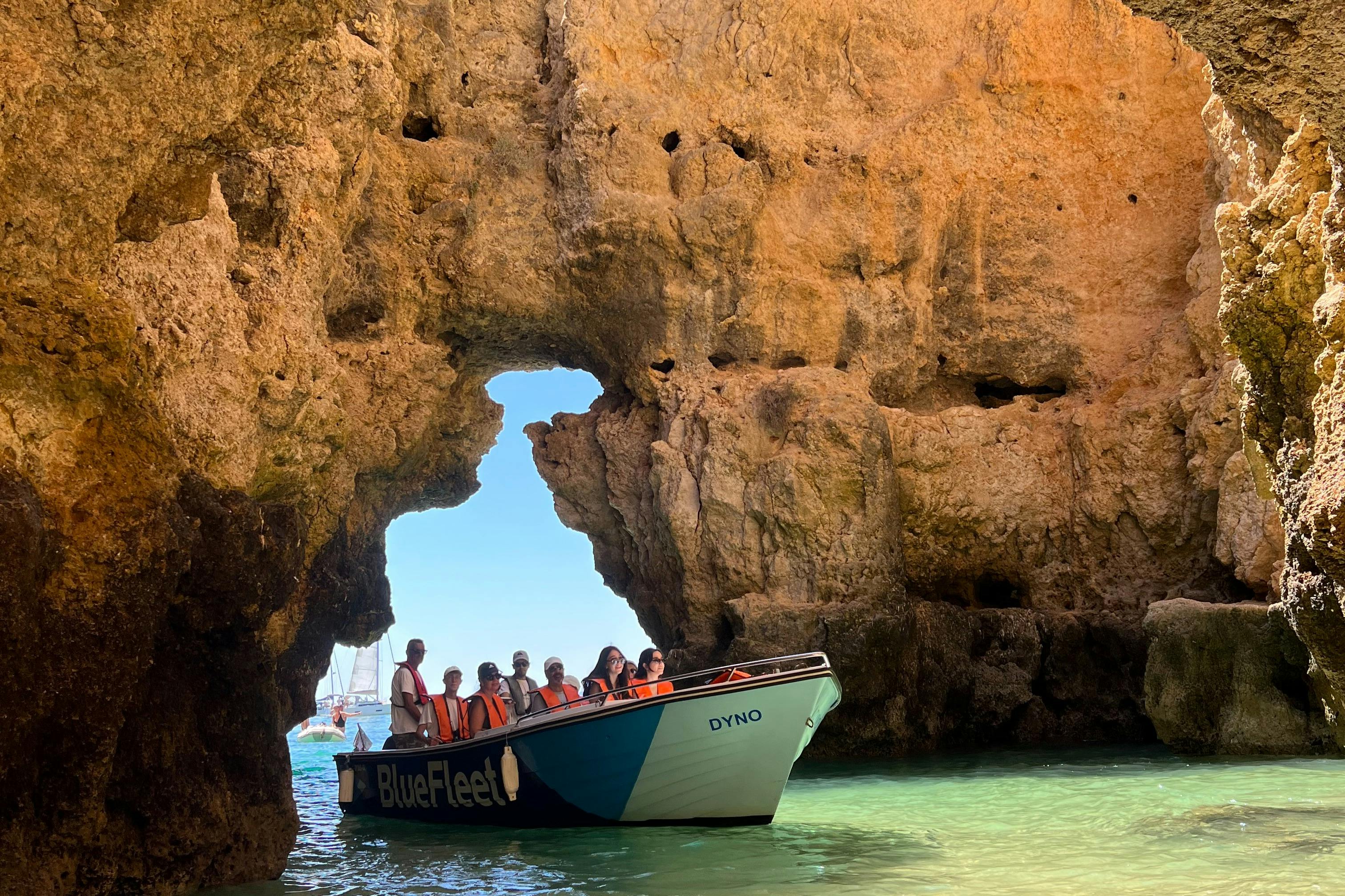 Si vous êtes à la recherche d'une petite aventure à Lagos, cette excursion à Ponta da Piedade à travers les célèbres grottes est faite pour vous ! Les grottes font partie des attractions les plus populaires et les plus incontournables de la côte de l'Algarve, et aucune visite n'est complète sans monter à bord d'un bateau pour découvrir par soi-même leur beauté magique. En naviguant autour de Ponta da Piedade, vous verrez une grande variété de grottes et de formations rocheuses qui ressemblent à des figures familières telles que le Titanic, l'Éléphant, la Cathédrale et bien d'autres encore. Que verrez-vous dans les grottes ? L'excursion part de Marina de Lagos, où vous serez accueilli par un guide local certifié qui a hâte de partager les secrets, la culture et l'histoire de cette merveilleuse côte !