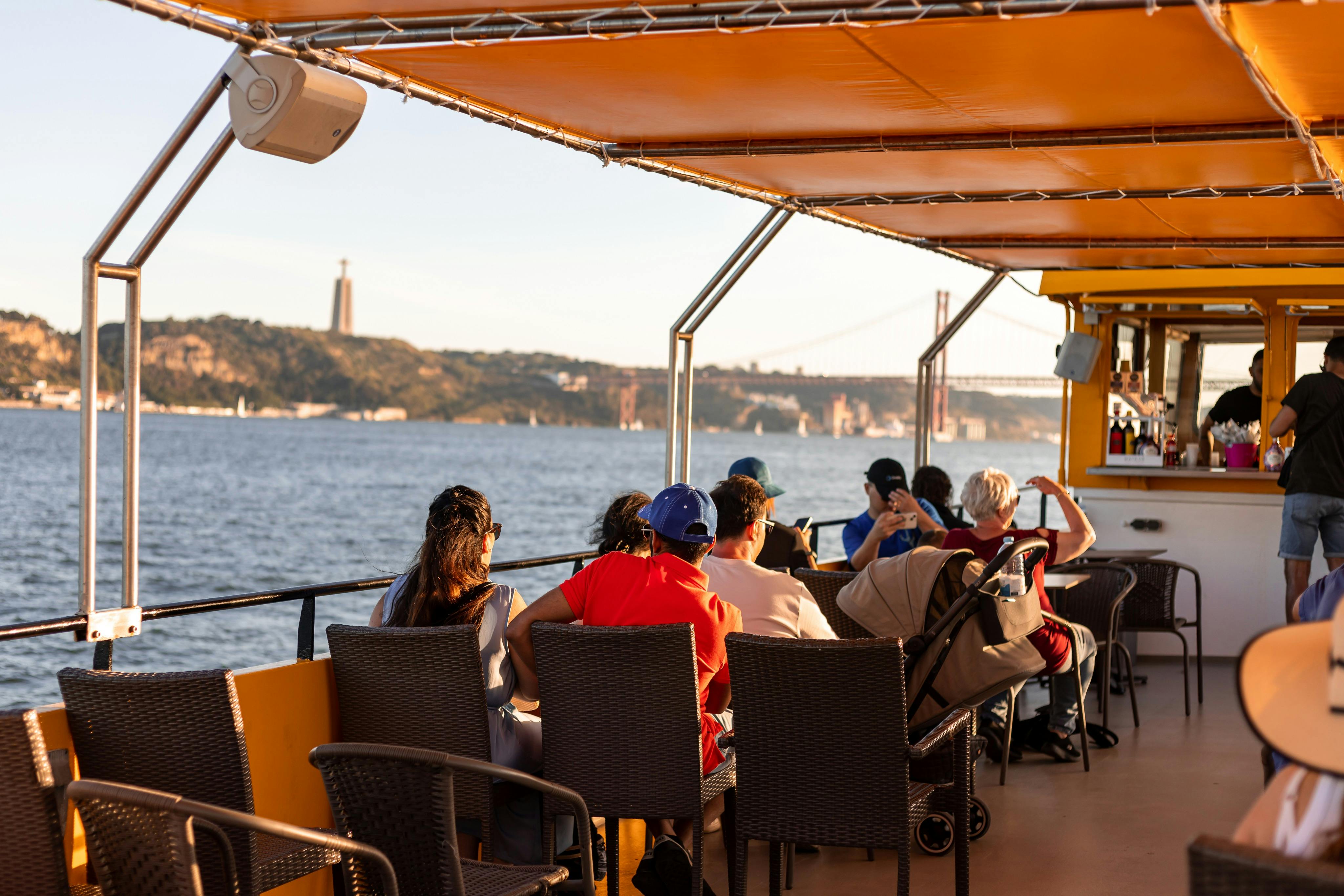Profitez d'un magnifique coucher de soleil et d'une vue unique sur Lisbonne depuis le fleuve Tage lors de l'excursion en bateau jaune. Appréciez le coucher de soleil et les vues sur la ville, et découvrez les principaux sites touristiques de Lisbonne : Le Christ Roi, le pont du 25 avril, le Monument aux Découvertes, et plus encore. Écoutez de la musique apaisante tout en prenant une boisson rafraîchissante et un délicieux en-cas lors de l'excursion en bateau jaune au coucher du soleil.