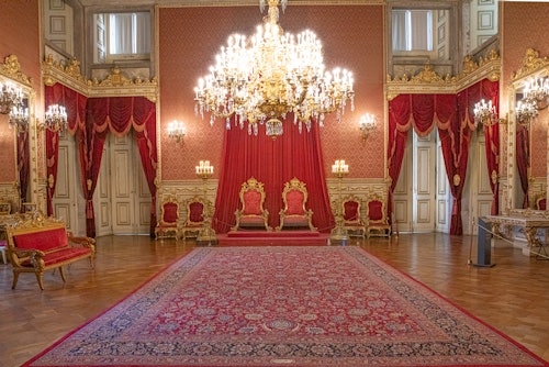 La construction du palais national d'Ajuda ne s'est pas faite sans heurts. La structure que vous voyez aujourd'hui n'est pas l'original. À l'origine, le roi Jean V avait prévu de faire du palais une résidence d'été dans la première moitié du XVIIIe siècle, mais la construction n'a commencé qu'après la destruction du Paço da Ribeira, la résidence royale située au centre de Lisbonne, par un tremblement de terre en 1755. Le premier palais d'Ajuda était construit en bois, mais il a brûlé en 1794. C'est alors qu'a été construit le bâtiment beaucoup plus résistant au feu que vous voyez aujourd'hui. À ce jour, les cérémonies de la République et de la présidence se déroulent dans le palais.