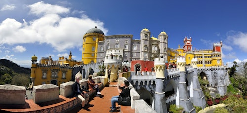 Explorez ce château unique du XVIe siècle, transformé en monastère par le roi Ferdinand II. À l'intérieur, vous découvrirez un mélange de styles architecturaux romantiques, Renaissance, manuélins et mauresques, débordant de couleurs et de détails. Les jardins présentent plus de 500 espèces d'arbres du monde entier. De différents points du château, vous verrez la région de Sintra en contrebas, le littoral et Lisbonne au loin.