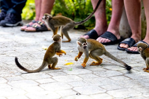 Préparez-vous à une aventure dans la jungle ! Commencez votre voyage par un arrêt à la charmante "Casa del Coco", où les secrets de la production d'huile de noix de coco sont dévoilés. Délectez vos papilles en dégustant des produits biologiques frais, du riche café torréfié au cacao alléchant en passant par l'exotique mamajuana. Ensuite, embarquez pour une visite guidée captivante de 45 minutes, au cours de laquelle vous rencontrerez de près les adorables singes écureuils de la jungle. Préparez-vous à ce que les singes volent votre cœur au cours de cette visite qui se déroule dans leur terrain de jeu de 5 acres dans la jungle. Ces sympathiques créatures ne sont pas étrangères aux humains, alors ne soyez pas surpris de les voir descendre des arbres pour se percher sur votre épaule et grignoter dans vos mains. Gardez l'œil ouvert pour voir des mères avec leurs bébés, sautant et grimpant avec une grâce agile. Et le plaisir ne s'arrête pas là ! Ces petites vedettes adorent être sous les feux de la rampe et sont toujours prêtes à prendre la pose devant votre appareil photo. Préparez donc vos smartphones pour des selfies inoubliables ! Réservez dès maintenant votre billet pour cette expérience magique avec les singes.