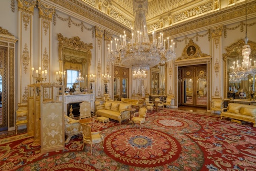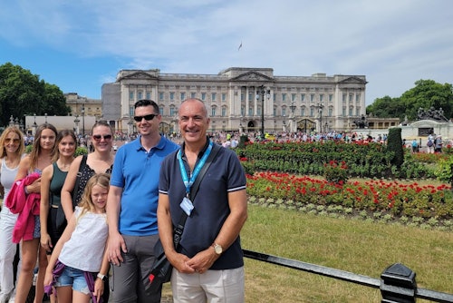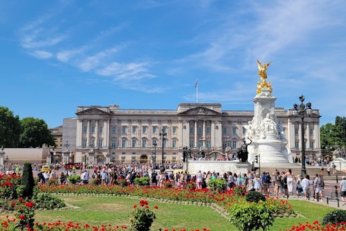 Préparez-vous à une visite guidée à pied depuis St. James's Square, en passant par St. James's Park. James's Square, en passant par St James's Park. Marchez le long du Mall, en passant devant des monuments célèbres, jusqu'à Buckingham Palace et le Victoria Memorial. La visite se termine par l'entrée dans le palais de Buckingham et une visite audio des salles d'apparat, de la salle du trône et des collections royales.