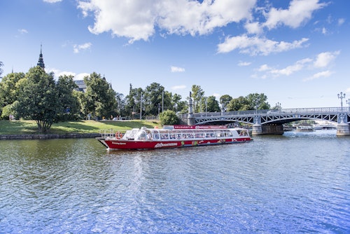 Profitez de l'incroyable ville de Stockholm et de ses sites pittoresques depuis la terre ou l'eau, pendant 24 heures. Votre billet est valable sur tous les grands bus rouges à monter et descendre, ainsi que sur les bateaux à monter et descendre.