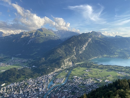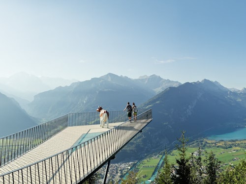 La beauté des Alpes bernoises, entre vallées verdoyantes et sommets enneigés, semble avoir été façonnée par les mains d'un sculpteur. Profitez de l'une des plus belles vues de Suisse lors de votre trajet en funiculaire de Interlaken à Harder Kulm. On vous assure que vous n'oublierez pas le paysage de sitôt !