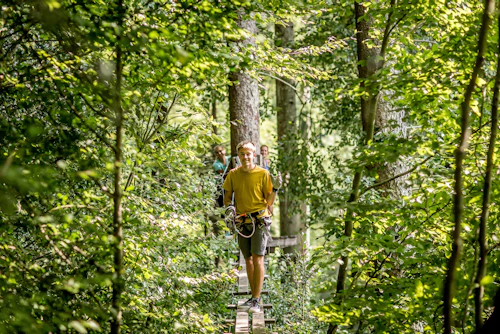 Faites-vous plaisir en franchissant plus de 120 obstacles sur neuf parcours différents, au milieu d'une nature magnifique et des montagnes de l'Oberland bernois. Le Ropes Park d'Interlaken est un terrain de jeu forestier amusant, adapté à toute la famille. Des petits amateurs de sensations fortes aux aventuriers adultes, il y en a pour tous les goûts. Même les débutants sont pris en charge. Que vous escaladiez des ponts en bois, braviez des balançoires de Tarzan ou que vous vous attachiez à un harnais pour essayer une nouvelle tyrolienne, vous serez pris en charge par des experts et chacun recevra des instructions de sécurité avant de commencer. Les cours Snowli Kids conviennent à tous les enfants qui peuvent marcher seuls. Il n'y a pas d'âge ou de taille minimum requis. Les parents peuvent même les aider depuis le sol.
