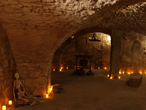 Faites un voyage dans le passé et découvrez les secrets de la vieille ville de Prague lors de cette visite historique à pied avec des visites du souterrain médiéval et d'un donjon de torture. Visitez les souterrains romans et gothiques de la ville, qui datent du 12e-14e siècle, et déterrez des histoires de l'époque médiévale de la ville. Soyez témoin d'un laboratoire secret d'alchimie et découvrez l'histoire du monstre Golem. Entrez ensuite dans le donjon, où vous en apprendrez davantage sur les horribles tortures médiévales. Vous pourrez même voir des dispositifs sérieusement barbares et entendre parler des horribles exécutions d'Oldtown en 1621.