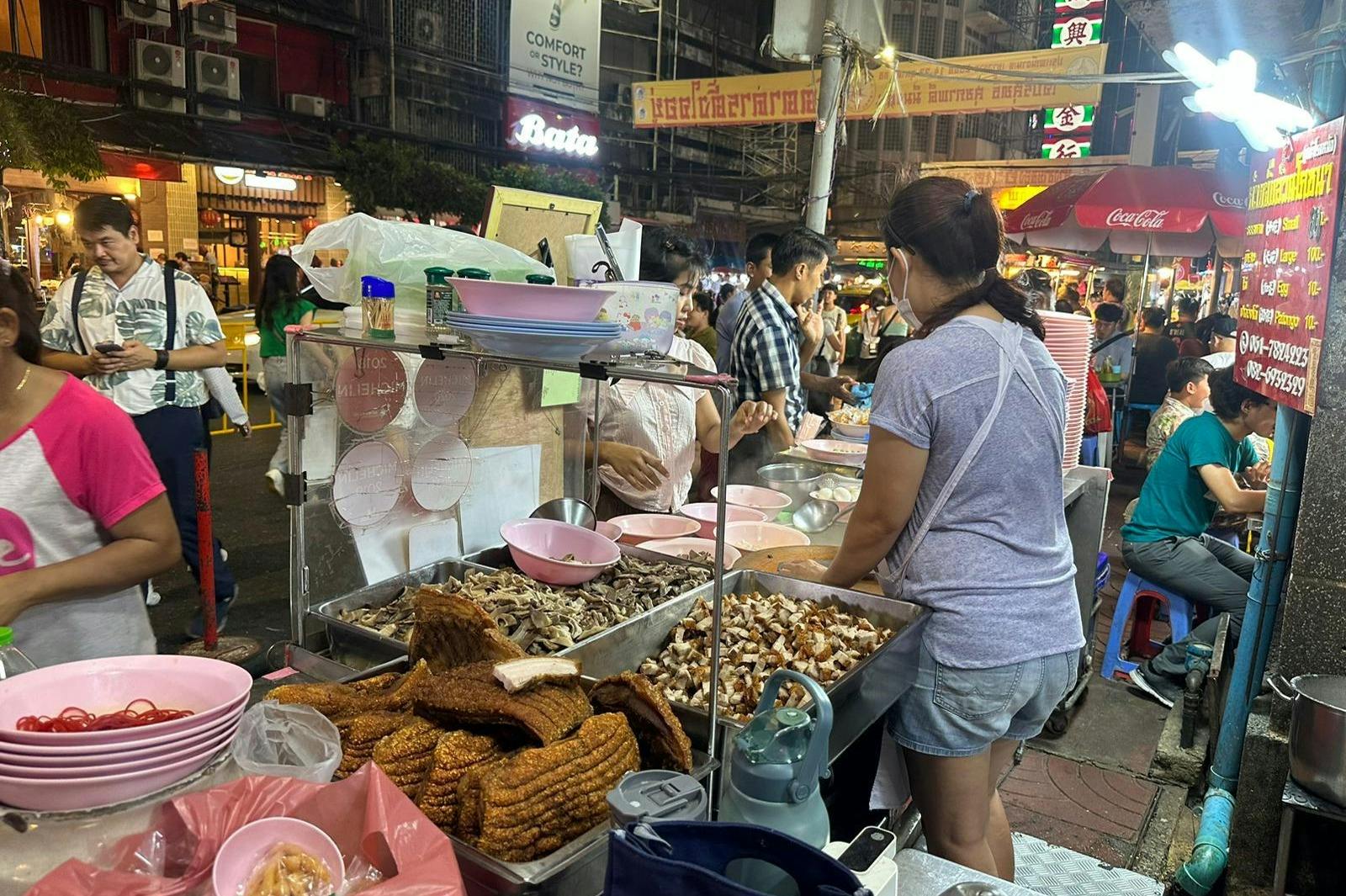 Découvrez les délicieuses saveurs de Bangkok grâce à cette visite guidée. Cette visite guidée à pied combine le meilleur des cuisines thaïlandaise et chinoise. La visite commence dans le quartier chinois animé, où vous dégusterez de la soupe de nouilles en verre, du satay et des gâteaux de poisson. Vous goûterez également une boisson locale unique et de savoureuses nouilles aux œufs. Ensuite, vous goûterez au curry vert et à un plat spécial préparé par un vendeur ayant reçu une prestigieuse étoile Michelin. Cette visite est un excellent moyen de découvrir la scène gastronomique et la culture de Bangkok. L'excursion se termine par deux délicieux desserts pour une fin en beauté. Cette visite ne convient pas aux végétariens ni aux personnes ayant des restrictions alimentaires.