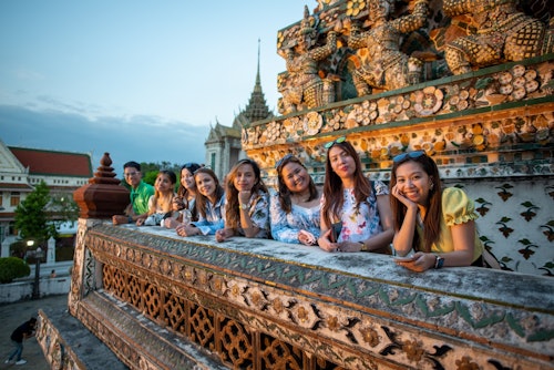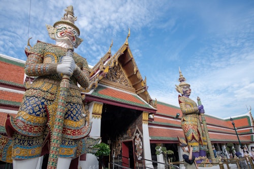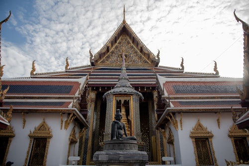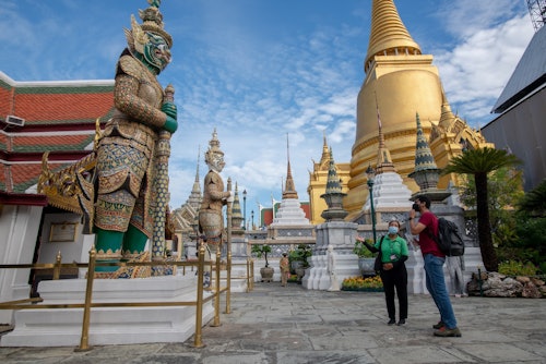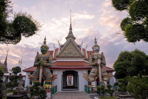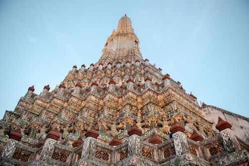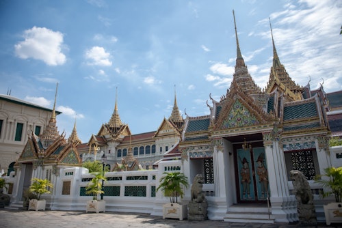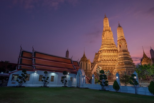 Commencez par le Grand Palais, la pièce maîtresse de la ville. Explorez ses salles royales, ses statues et sa riche histoire, et imprégnez-vous de la beauté de la culture thaïlandaise. Visitez le Wat Phra Kaew, un site sacré situé à l'intérieur du Grand Palais, pour admirer le vénérable Bouddha d'émeraude et les peintures murales complexes. Ensuite, montez à bord d'un tuk-tuk pour rejoindre l'embarcadère et prendre le ferry pour le Wat Arun, un sanctuaire vieux de plusieurs siècles qui abrite un majestueux chedi blanc orné de fragments de mosaïque colorés.