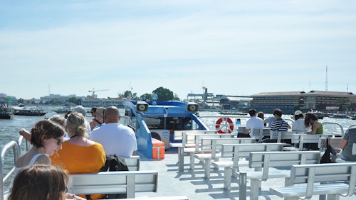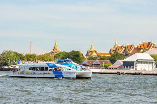 Le rythme effréné de Bangkok, avec ses tuk-tuks et ses touristes, fait partie du charme de la ville. Mais si vous cherchez un moyen plus rapide de traverser la ville, le bateau touristique Chao Phraya est la solution idéale. * Le bateau s'arrête à neuf jetées le long de la rivière et vous permet de rejoindre les trains de Bangkok, via les jetées Saphan Taksin (BTS) et Khlong Talad (MRT). Non seulement c'est pratique, mais ça vous permet aussi de découvrir la ville sous un nouvel angle.