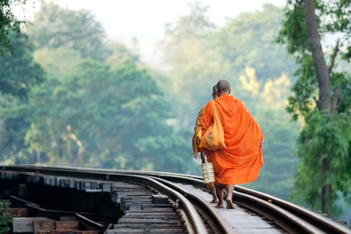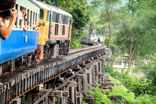 Visitez les sites historiques de la Seconde Guerre mondiale dans la région de Mueang grâce à un mélange de routes, de rivières et de chemins de fer, chaque étape racontant une histoire unique. Visitez un cimetière de prisonniers de guerre, écoutez les récits au musée de la guerre JEATH et marchez sur le célèbre pont de la rivière Kwai. Découvrez le chemin de fer de la mort. Avant cela, faites une promenade dans la jungle qui vous mènera jusqu'à un restaurant. Mangez un buffet de plats thaïlandais et prenez le temps de réfléchir.