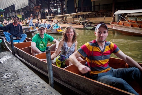Vous voulez avoir un véritable aperçu de la Thaïlande ? Passez une journée à découvrir les meilleurs marchés et temples de Bangkok, et profitez d'une combinaison de culture locale, de visites touristiques et de dégustation de nourriture, en une seule visite alléchante. Le premier arrêt sera le marché ferroviaire de Maeklong. Appelé "Talat Rom Hup", ce qui signifie en gros "marché aux parapluies", il est célèbre pour la bousculade des vendeurs qui s'empressent de remballer leurs marchandises lorsqu'un train passe. Vous aurez peut-être même l'occasion de voir passer le train avant de vous rendre au marché flottant de Damnoen Saduak. L'un des plus célèbres marchés flottants de la ville, il est constitué d'un réseau de canaux étroits parsemés de vendeurs pagayant sur leurs bateaux remplis de leurs marchandises. Après s'être gavé de délicieux mets thaïlandais, on part à la découverte des temples. Le premier est le Wat Phra Kaew (également connu sous le nom de temple du Bouddha d'émeraude), l'un des temples les plus sacrés du pays. Profitez de l'environnement tranquille et spirituel avant de vous rendre au Grand Palais.