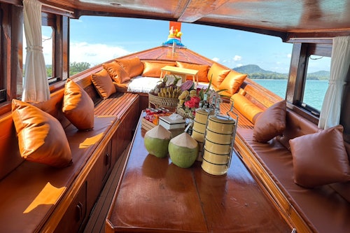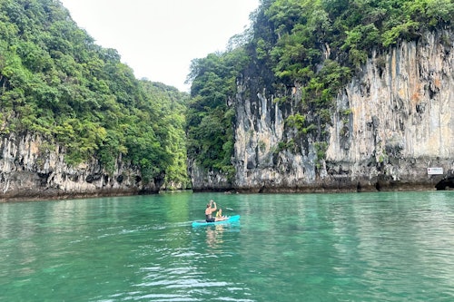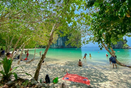 Départ à l'aube pour un voyage à travers les magnifiques îles de Krabi. Vous arrivez à la baie de Krabi Hong Island à 6h00 pour assister au lever du soleil depuis l'une des îles les plus chères de Krabi et déguster une collation en bord de mer. Vers 8h00, vous naviguez dans le lagon isolé de l'île de Krabi Hong. En naviguant dans un passage étroit, vous découvrirez une oasis idyllique d'eau turquoise scintillante, d'îles tropicales luxuriantes et de falaises vertigineuses.