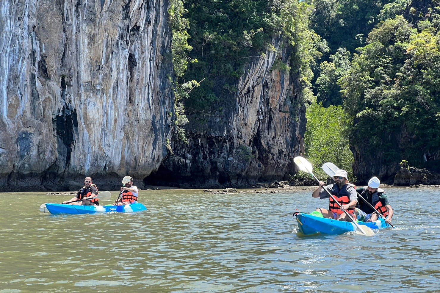 Partez pour un voyage à Ao Thalane, une magnifique oasis de forêts de mangroves, de montagnes et de grottes. Un guide compétent vous garantit une aventure passionnante mais sûre à travers cette nature sauvage et magique. Cette aventure audacieuse vous emmène à travers une grotte de calcaire et des canyons étroits, à la fois impressionnants et fascinants. Naviguez à travers la forêt de mangrove émeraude, explorez la grotte aux crocodiles et admirez le lagon paisible. Cette opportunité vous permet d'observer des oiseaux, des singes et d'autres animaux sauvages dans leur habitat naturel. L'expédition se termine par une visite paisible d'une plage isolée, loin des foules. Profitez du magnifique coucher de soleil, qui peint le ciel d'or et de pourpre, avec le bruit apaisant des vagues dans le silence du soir.