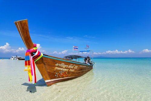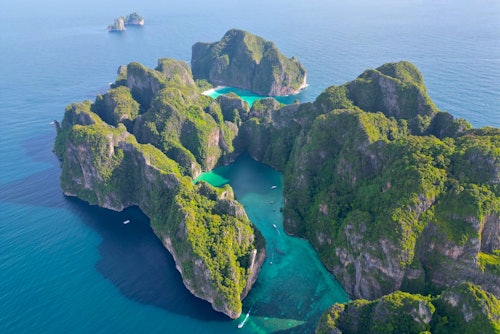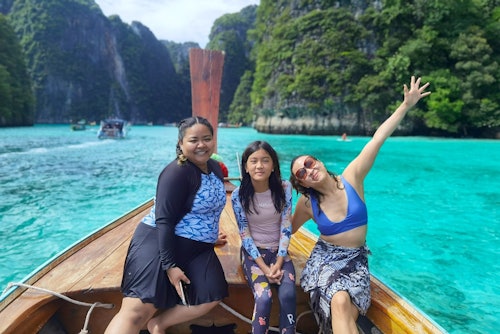 Montez à bord d'un exquis bateau à longue queue privé pour une excursion unique et autoguidée à Koh Phi Phi, au départ des rivages animés de Phuket. Vivez l'excitation des transferts en bateau rapide vers Phi Phi. En une journée, vous pourrez explorer Maya Bay, sauter dans les eaux turquoise du lagon de Pileh, rencontrer des singes macaques à Monkey Bay, visiter la mystérieuse grotte de Viking et faire de la plongée avec masque et tuba.