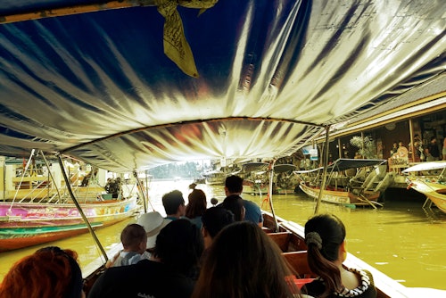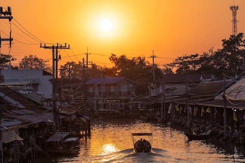 Si vous aimez un peu de troc, attendez de voir comment on le fait en Thaïlande ! Lors de cette visite guidée d'une journée, explorez deux marchés emblématiques de la périphérie de Bangkok. Le marché du train de Maeklong est un marché frais situé juste à côté d'un chemin de fer bien usé. Observez les vendeurs fermer et ouvrir leurs auvents de manière experte pour faire de la place au fur et à mesure que les trains passent. Découvrez l'histoire sanglante des batailles de la région et voyez le Bouddha d'or à l'intérieur du Wat Bang Kung, un temple bouddhiste impressionnant englouti par les racines d'un énorme arbre Banyan. Situé sur le canal Amphawa, le marché flottant d'Amphawa est l'un des marchés flottants les plus populaires de Thaïlande. Visitez cette plaque tournante au bord de la rivière et voyez les vendeurs vendre de délicieuses friandises comme des sucreries et des fruits de mer. Puis, après le coucher du soleil, lorsque les lumières se sont tamisées, détendez-vous en faisant une croisière sur la rivière, entouré de lucioles vacillantes.