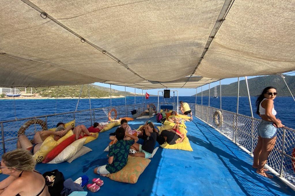 Commencez à 11 heures par une navigation rafraîchissante de 30 minutes vers la célèbre Black Island (île de Cléopâtre), réputée pour ses sources naturelles jaillissant de grottes intrigantes. Le programme prévoit ensuite une visite de l'éblouissante Meteor Bay, de la vibrante Aquarium Bay et de la sereine Rabbit Bay. Ces endroits offrent suffisamment de temps pour une délicieuse baignade dans les baies. Lorsque le soleil atteint son zénith, un délicieux déjeuner, inclus dans le prix du billet, vous attend à bord. Le menu comprend du poulet succulent, de la salade fraîche et des spaghettis appétissants. Ne craignez rien, chers végétariens ! Il y a un menu spécial pour vous. Le voyage de retour vers le port commence à cinq heures, avec le soleil couchant comme toile de fond pittoresque. Black Island offre une expérience de baignade exclusive dans une grotte creusée dans la roche. Dans la baie de l'Aquarium, on peut observer une variété d'espèces de poissons nageant dans leur habitat naturel. N'hésitez pas à vous détendre à bord, une boisson rafraîchissante à la main, car les teintes de la mer Égée oscillent entre le bleu le plus foncé et le turquoise le plus pâle. Ce ne sont là que quelques-unes des expériences spectaculaires qui vous attendent au cours de ce voyage. C'est une pause thérapeutique et un paradis pour les amoureux du soleil et de la mer qui n'attendent que d'être découverts. Alors, réservez votre billet et embarquez pour un voyage inoubliable !