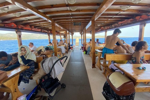 Embarquez pour une aventure nautique à 11 heures, en glissant sur des mers sereines aux nuances d'azur et de turquoise, tout en vous régalant d'un littoral à couper le souffle. Premier arrêt ? La sereine Rabbit Bay, un havre de paix où l'on plonge dans une eau chaude et cristalline, peuplée de poissons éclatants et de coraux captivants. Le voyage se poursuit jusqu'à la paisible German Bay, un autre endroit paradisiaque pour une baignade idyllique. L'île d'Orak vous attend ensuite, où des sables d'un blanc pur bordent la baie de l'île, invitant à un autre plongeon revigorant dans les eaux fraîches. Lorsque la faim se fait sentir, vous pouvez savourer un délicieux déjeuner à bord, composé d'un succulent poulet, d'une salade croquante et de spaghettis copieux. Pour nos amis végétariens, des options végétariennes sont proposées. À la fin de la journée, imprégnez-vous des merveilleux souvenirs de l'aventure en mer en retournant au port, le cœur plein et le moral au beau fixe. Ce n'est pas seulement un billet, c'est une invitation à une journée de pur bonheur et d'exploration aquatique inoubliable.