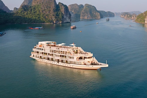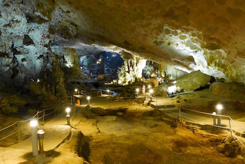 Itinéraire : JOUR 1 : HA NOI - BAIE D'HALONG - GROTTE SURPRENANTE - ILE DE TITOP (L/D) Matin : - Prise en charge à l'hôtel (en option) - Embarquement à bord de la croisière, enregistrement et déjeuner. Après-midi : - Visite de la grotte surprenante (grotte de Sung Sot) pour exploration et randonnée. - Détente, baignade ou randonnée sur l'île de Titop - Pause au coucher du soleil avec des collations et des fruits - Participez à un cours de cuisine sur le pont soleil Soirée : - Dîner à bord - Jeux de société, jeux de cartes, karaoké ou pêche aux calamars. JOUR 2 : GROTTE DE LUON - PORT INTERNATIONAL DE HALONG - HANOI (LB/ BR) Matin : - Petit déjeuner léger - Visite de la grotte de Luon avec possibilité de faire du kayak ou une promenade en bateau en bambou. - Brunch et détente - Débarquement et attente du bus L'après-midi : - Dépose facultative à l'hôtel