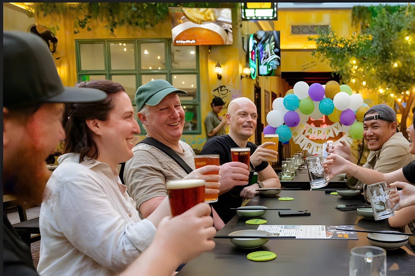 Explorez les rues de Ho Chi Minh Ville à l'arrière d'un scooter. Un guide local viendra vous chercher et vous emmènera dans les quartiers et les endroits intéressants pour déguster de la bière artisanale et de la nourriture de rue. Commencez par un verre de Bia Hoi, la bière fraîche du Viêt Nam. Dégustez des IPA, des pale ales et des pilsners brassés selon des techniques traditionnelles. Essayez la bière Lao Gia, une des bières préférées des habitants du quartier chinois de Ho Chi Minh-Ville, connue pour sa saveur unique. Le long de l'itinéraire, vous pourrez déguster une variété de plats de rue, avec des options végétaliennes et non végétaliennes. Visitez des lieux où les habitants mangent et boivent, et découvrez la culture et l'histoire de la bière au Vietnam grâce à votre guide. À la fin de l'excursion, vous serez ramené à votre lieu d'hébergement.