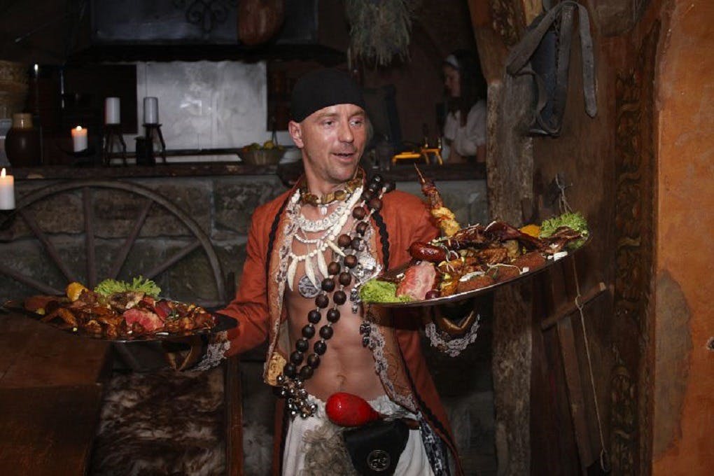Scopri le profondità delle radici medievali di Praga con i biglietti per uno spettacolo medievale e una cena di 3 portate in un pub situato sotto il Castello di Praga. L'autista dell'autobus ti preleverà dal tuo hotel nel centro di Praga e ti trasporterà indietro nel tempo in un pub sotterraneo risalente al XIV secolo. Con un drink a scelta, rilassati e goditi una serata ricca di intrattenimento insolito: uno spettacolo di fuoco con spadaccini, giocolieri e ballerini! Assapora un delizioso pasto di 3 portate circondato da musica e costumi storici e approfitta della riconsegna gratuita dell'hotel al termine del tuo soggiorno nella Praga feudale.