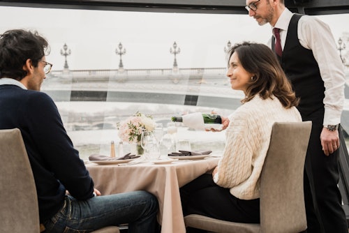 Ammira la pittoresca città di Parigi dalla Senna con questa crociera deliziosa: è un'ottima scelta se desideri pranzare in modo diverso. Scegli fra tre opzioni per il pranzo. Viene tutto servito con musica dal vivo, il meglio dell'ospitalità francese, e naturalmente anche splendide vedute cittadine!