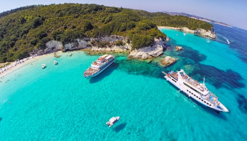 Partendo da Corfù, dai uno sguardo alla città vecchia e alle sue storiche fortezze veneziane prima di attraversare il lato nord di Paxos e ammirare la baia naturale di Lakka. Immacolato dal turismo di massa, questo villaggio tradizionale è perfetto per i viaggiatori che cercano tranquillità e relax lontano dalla folla. A soli cinque minuti a piedi dal lato ovest del villaggio, troverai due splendide spiagge circondate da acque cristalline, perfette per nuotare o prendere il sole! Continua a navigare a sud lungo la costa occidentale di Paxos, ammirando la costa frastagliata mentre procedi, prima di entrare nelle spettacolari grotte marine (famose per le loro acque blu brillante) e infine arrivare alla piccola isola di Antipaxos. Qui avrai l'opportunità di nuotare e goderti le acque cristalline.