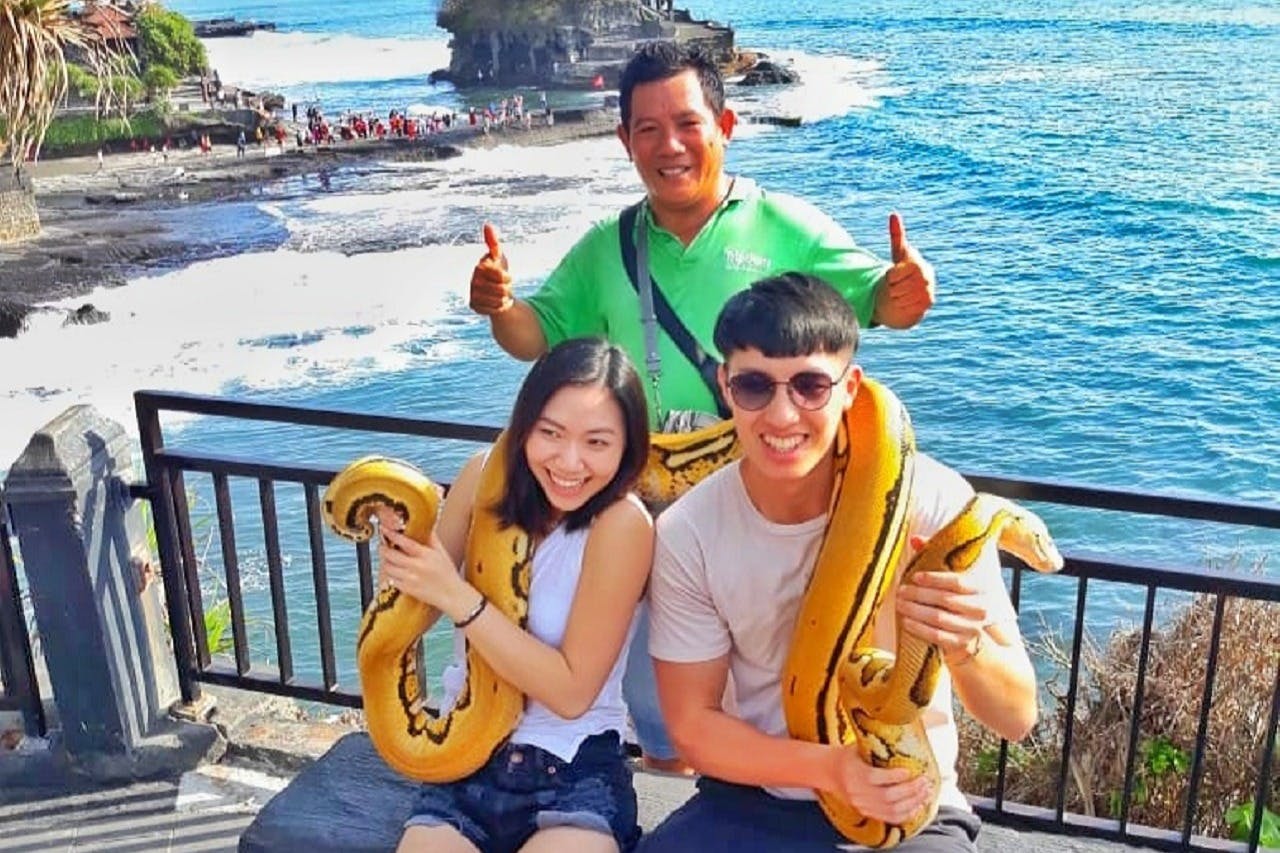 Immagina questo: scogliere spettacolari, onde che si infrangono, spruzzi di mare selvaggi e un sole arancione che scende sotto l'orizzonte. Se l'ambientazione di Tanah Lot non fosse sufficiente, il tempio stesso ti ispirerà in questa avventura pomeridiana in uno dei luoghi più amati di Bali. Dedicato agli dei del mare, Tanah Lot risale a oltre 400 anni fa. La tua guida ti spiegherà la leggenda del sommo sacerdote Dang Hyang Niratha, giunto a Bali per diffondere l'induismo. Dopo la resistenza degli abitanti del villaggio, spostò una grande roccia nel mare con il potere della meditazione, o almeno così si racconta. Che sia vero o meno, il tempio di roccia scoscesa in mare è davvero spettacolare. Dopo aver scattato le tue foto, siediti e ammira il classico tramonto di Tanah Lot, quando il cielo azzurro si tinge di rosa e arancione. Una volta terminato lo spettacolo del tramonto, sarai trasferito al tuo alloggio. La conclusione perfetta di una giornata in paradiso!
