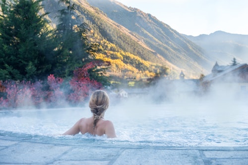 Indossa l'accappatoio e le ciabattine in omaggio e scegli tra le spumeggianti opzioni termali: prova le stanze del sale per ringiovanire la tua pelle e le stanze relax per allentare la tensione. Troverai anche saune, idromassaggi, cascate, piscine all'aperto e altro ancora, il tutto all'ombra dell'indomabile Monte Bianco.