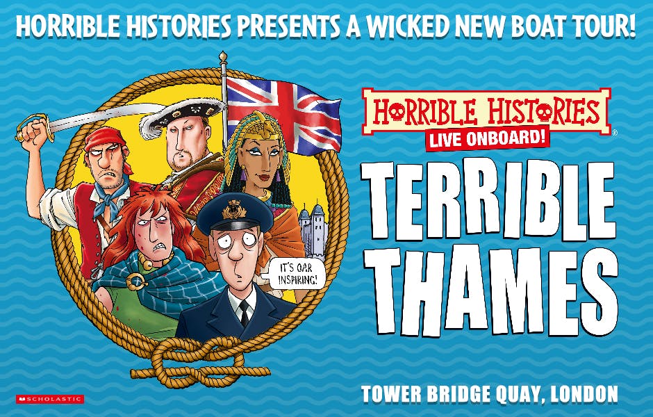 Horrible Histories è orgogliosa di presentare un modo completamente nuovo di esplorare Londra con una crociera turistica. Con Terrible Thames scoprirai tutte le storie che non ti vengono raccontate durante i tradizionali giri turistici, compresi tutti i dettagli macabri!