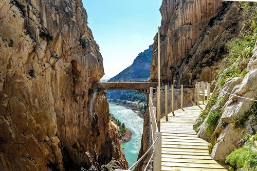 Questa è una passeggiata da ricordare. Abbracciando il fianco di una scogliera, attraverserai uno stretto sentiero all'interno di un canyon. Anche se può sembrare terrificante, è una gita di cui non ti pentirai. Il trasporto da El Chorro è incluso nel tour, quindi non preoccuparti di arrivare in un luogo e finire in un altro. Potrai tornare all'auto parcheggiata o al treno di collegamento con facilità. Il sentiero è considerato uno dei più pericolosi al mondo, ma non preoccuparti troppo: è stato rinnovato nel 2015 e rispetta tutti gli standard di sicurezza. Ricordalo mentre cammini su passerelle larghe un metro con sotto di te solo scogliere a picco sul mare. Tra una presa e l'altra, potrai apprezzare la vegetazione mediterranea, i panorami mozzafiato all'interno del canyon e il fascino che circonda la regione. Una guida ti accompagnerà in ogni fase del percorso, quindi aspettati di raccogliere qualche informazione divertente da abbinare alle splendide foto che scatterai.
