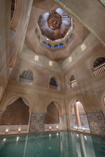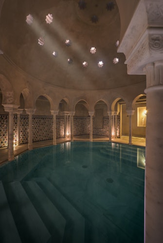 Estendi la tua magia durante le tue vacanze a Málaga con un po 'di tempo a disposizione nell'Hammam Al Ándalus, il bagno arabo di Málaga. Immergiti in acque curative, circondato da una splendida architettura moresca, piastrelle decorative, tetti a cupola e candele tremolanti per una maggiore felicità. Rilassati nelle varie stanze e nei bagni, che vanno dal caldo al freddo, poi scegli un massaggio rivitalizzante. La conclusione perfetta di un frenetico itinerario turistico!