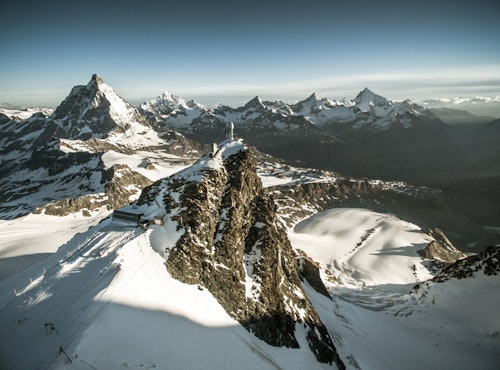 Immergiti in un mondo di ghiaccio eterno, a soli 45 minuti da Zermatt con le funivie di Zermatt. Il viaggio sul Matterhorn Express e la corsa sul ghiacciaio del Matterhorn è davvero indimenticabile, con alcune delle più grandi viste di montagna del mondo. Una volta raggiunta la cima della stazione della funivia più alta d'Europa, potrai visitare le piattaforme panoramiche e ammirare 38 diverse cime - tutte alte circa 4.000 metri - delle Alpi francesi, italiane e svizzere. Potrai anche scorgere la bellezza di 14 diversi ghiacciai. Prenditi una pausa per visitare il Cinema Lounge e passeggia nel palazzo del ghiacciaio più alto del mondo per completare la tua esperienza alpina.