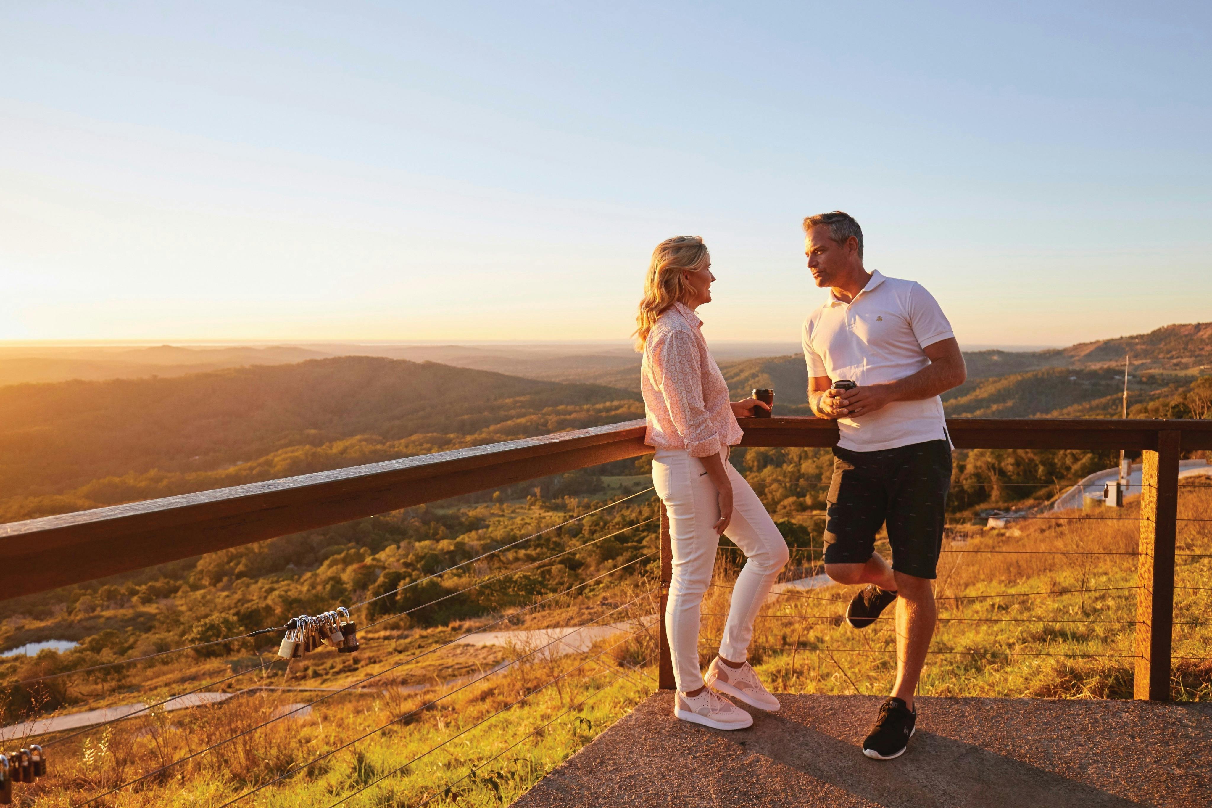Oproep aan alle fijnproevers! Deze Sunshine Coast Hinterland Day Tour combineert het prachtige landschap van het achterland van de Sunshine Coast met een aantal van de beste streekproducten! De eerste stop van de dag is een schilderachtige uitkijkpost. Geniet van het prachtige uitzicht op de in de National Heritage lijst opgenomen Glass House Mountains, en dan is het tijd om naar het zuivelstadje Maleny te gaan en een selectie plaatselijke en internationale kazen te proeven bij Maleny Food Co. Van Maleny ga je naar The Barrel, een iconische bestemming in de vorm van een reusachtig wijnvat op het terrein van Clouds Vineyard. Ruik en proef een fles wijn voor je je tegoed doet aan een overheerlijke lunch van twee gangen aan de oever van het meer. Vervolgens ga je via een schilderachtig uitkijkpunt naar het schilderachtige dorp Montville om van vrije tijd te genieten. Snuffel rond in de winkels en boetiekjes, koop plaatselijke handgemaakte voorwerpen en adem de frisse berglucht in. Je kunt ook Chocolate Country bezoeken voor een luxe handgemaakte proefdoos (één per stel) pralines, voor je de schilderachtige terugweg naar huis maakt.