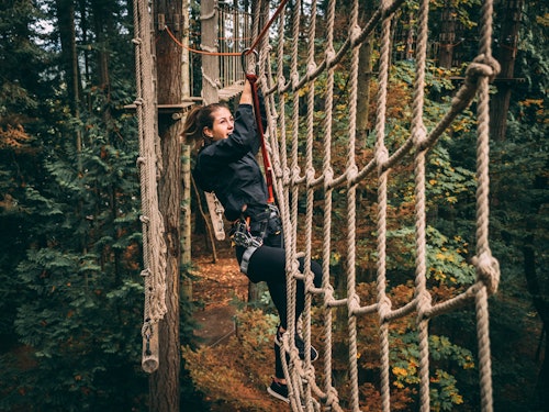 Je hoeft niet vriendelijk te zijn tegen Tarzan om door het bladerdak te slingeren. Je krijgt een toegangsticket voor WildPlay Park Victoria! * WildPlay Park is niet zomaar een hindernisbaan. Nee, het is iets veel uitdagender. Jouw taak is om een torenhoog pad te volgen met tokkelbanen, hangende ladders en hangende bruggen. Neem het op tegen luchtgames en een enorme schommel die zelfs de kalmste zenuwen zal testen. Hoe hoger je klimt, hoe moeilijker het wordt, maar maak je geen zorgen. Je hebt dit. Ja, jij. Ga ze halen!