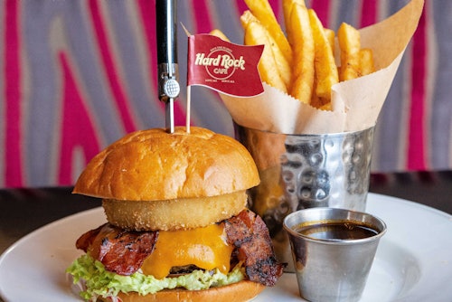 Je kunt het Hard Rock Cafe in geen enkele stad missen, maar de Amsterdamse vestiging van het wereldwijde restaurant- en entertainmentbedrijf is een van de mooiste! Het Hard Rock Cafe Amsterdam ligt direct aan een charmante gracht, tussen het groene Vondelpark en het bruisende Leidseplein, en is een all-you-can-longe buffet met sightseeing-eye-candy. * Maar de echte blikvanger in dit leuke rock-'n-roll-restaurant is de favoriet van het restaurant. Dus, verover je honger naar vernietiging en bereik burger nirvana met de Original Legendary® Burger!