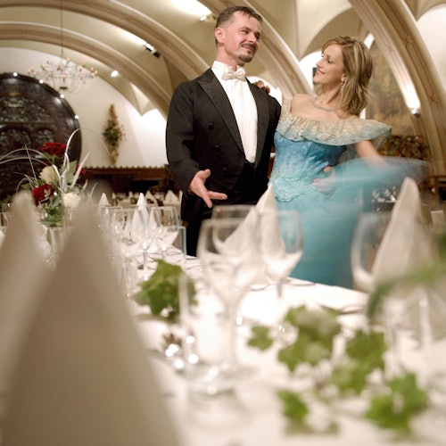 Gelegen in de kelder van het beroemde stadhuis van Wenen, wacht een echt Weens feest op je om te worden geserveerd. Naast je 3-gangendiner kun je genieten van 3 verschillende muziekscènes en optredens. * Bij elke voorstelling krijg je een ander kostuum, dus zodra je bord leeg is, maak je dan klaar om te zien hoe zangers en dansers je meenemen op een reis over bergmelodieën naar de verfijnde wals van de Blauwe Donau.