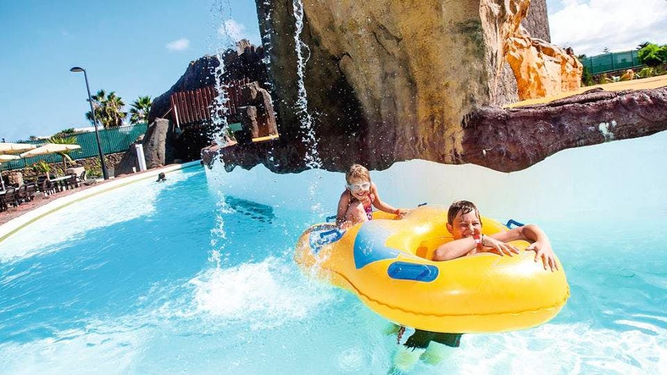 Cannonball je lichaam en geest in een wereld van waterig plezier in Aqualava Waterpark in Playa Blanca, Lanzarote! Geïnspireerd door en gethematiseerd rond Lanzarote's vulkanische landschap, worden de zwembaden in dit gezinsvriendelijke waterpark verwarmd door geothermische energie, en duurzaamheid en hygiëne zijn in elk aspect van het park ingebouwd. Vang een paar golven in het zoutwater golfslagbad bij Aqualava Beach, drijf vrolijk door de Magma Rivier in een reusachtige rubberen ring, haal de adrenaline een tandje hoger op vijf lusvormige, kronkelende waterglijbanen, en geniet van een leuke, vriendelijke sfeer in de warme zon van Lanzarote.