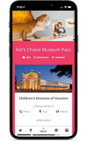 As crianças estão no controle com o Houston Kid's Choice Museum Pass (não se preocupe, você ainda pode fazê-las fazer as tarefas). Este bilhete de um dia poupa dinheiro na entrada de quatro dos museus mais fascinantes, interativos e para crianças de Houston. Deixe-os aprender sobre suas personalidades através de exposições interativas no Children's Museum de Houston, que foi classificado como o melhor museu infantil dos EUA pela revista pais. Vá ao Museu de Ciência Natural de Houston para descobrir vestígios da civilização humana através dos tempos - pedras preciosas, ouro pré-colombiano, relíquias egípcias e muito mais. Se os seus filhos gostam de explorar o espaço, vão gostar do espetacular Burke Baker Planetarium do HMNS. O Museu da Saúde investiga o que significa ser humano através de exposições multissensoriais e o Lone Star Flight Museum conta com 40 aeronaves vintage e artefatos de aviação sem fim. Você terá acesso a ambos!