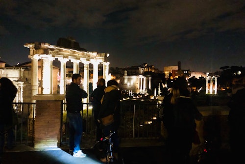 O que poderia ser mais divertido do que ver Roma sobre duas rodas, indo para onde os veículos normais não podem ir? Reserve esta experiência única na vida e risque "ver Roma por e-Bike" da sua lista de baldes! Sua aventura começará perto de St. Maria Maggiore, uma das mais belas basílicas de Roma. Pedale até o topo da colina Aventino para uma impressionante vista panorâmica do pôr-do-sol da cidade Eterna. Depois siga para Fori Imperiali, Campidoglio, e Circo Massimo, que são particularmente bonitos ao entardecer. Pare para um delicioso jantar em uma das melhores Salumerias de Roma e saboreie uma degustação de salame, queijo e vinho.