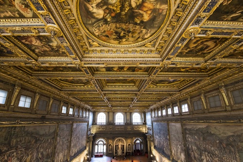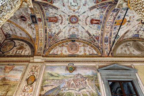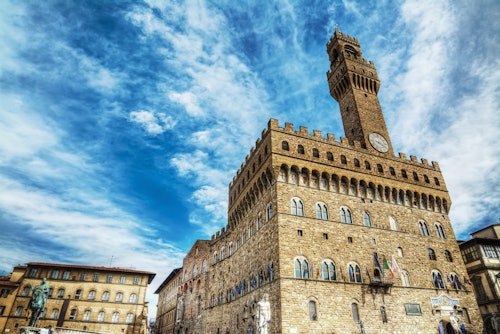 Treceți la coadă și explorați Palazzo Vecchio, simbolul puterii civice din Florența de secole, într-un tur ghidat multimedia. Urcați pe Turnul Palazzo Vecchio pentru vederi fantastice asupra Florenței și vizitați muzeul care este încă sediul guvernului local al orașului.