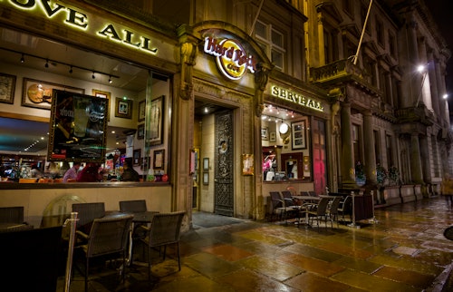Nu vă puteți opri din căutarea unor instrumente legendare? Ai verificat deja sub pod? Luați o pauză și vedeți chitara Red Hot Chili Peppers la Hard Rock Cafe Edinburgh, semnată de membrii trupei, inclusiv Flea și Anthony Kiedis! * În timp ce ești înconjurat de suveniruri rock 'n roll, mușcă în Original Legendary® Burger – un gust al Americii care vine cu un burger cu friptură Black Angus, slănină afumată, brânză cheddar, salată verde, roșii coapte în viță de vie și o crocantă. inel de ceapă. Sunt incluse și o garnitură sau cartofi prăjiți sau o salată!
