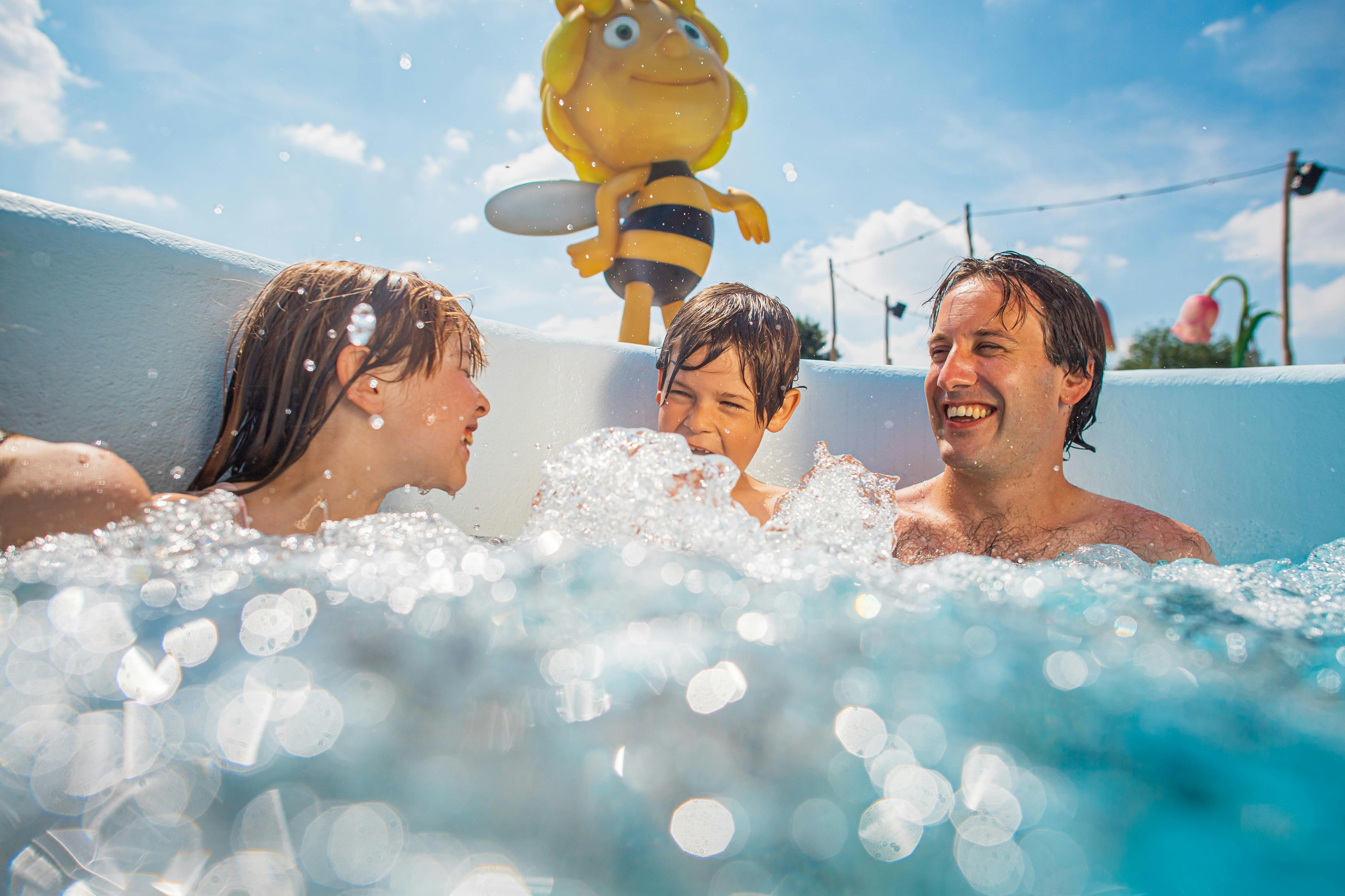 Ia-ți biletele pentru Plopsaqua Hannut-Landen și explorează unul dintre cele mai noi parcuri acvatice din Belgia. Ești pregătit pentru o zi plină de distracție în apă, tobogane și aventuri de neuitat? Atunci pregătiți-vă, pentru că Maya Bee și Bumba sunt dornici să vă ducă într-o călătorie aventuroasă prin lumea lor magică a florilor și a circului. Este ziua perfectă pentru familii, cu plimbări, tobogane și chiar locuri în care părinții să-și facă puțină îngrijire. Biletele dvs. Plopsaqua vă oferă acces la tobogane precum Sky Drop și Sliding Tires și îi puteți trimite pe cei mici pentru prima lor înot în piscina cu instrucțiuni. Distrați-vă în terenul de joacă în aer liber și în grădina cu apă, relaxați-vă în jacuzzi-urile și în cabina de transpirație revitalizantă și pierdeți-vă pe epicul râu sălbatic. Este o zi de familie magică, memorabilă!